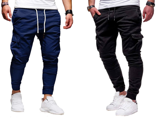 Premium 6 Pocket Cargo Jogger’s Pant For men’s (Combo) – Black and Blue