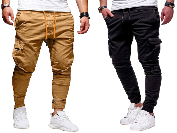 Premium 6 Pocket Cargo Jogger’s Pant For men’s (Combo) – Black and Khaki