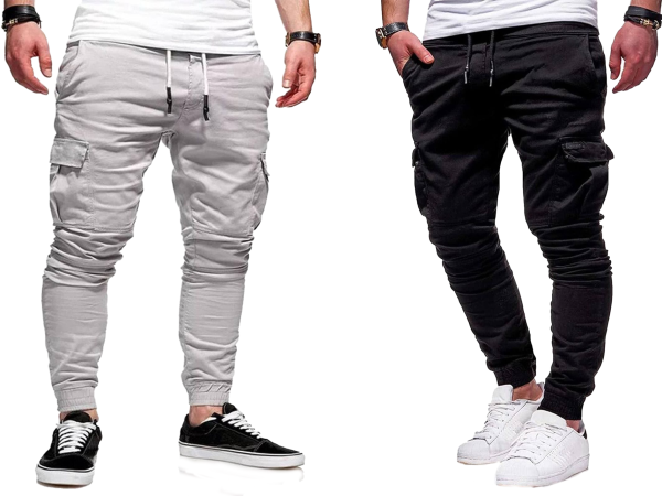 Premium 6 Pocket Cargo Jogger’s Pant For men’s (Combo) – Black and Light Ash