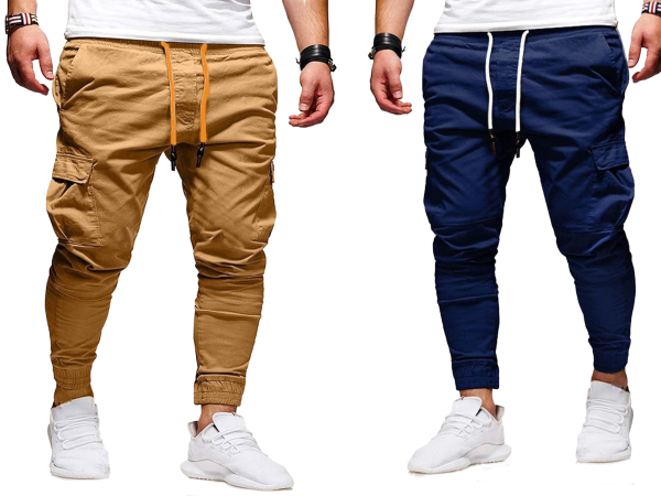 Premium 6 Pocket Cargo Jogger’s Pant For men’s (Combo) Blue and Khaki