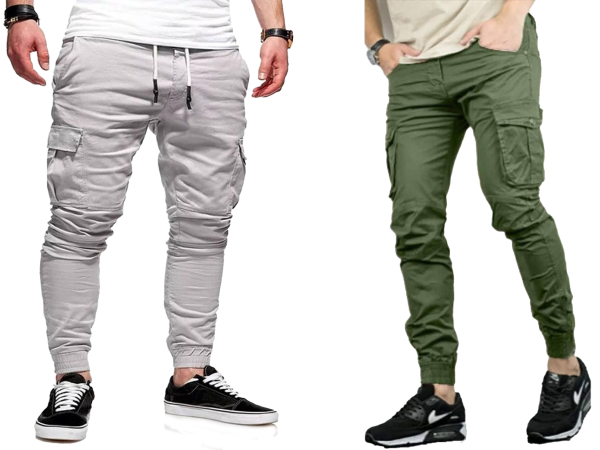 Premium 6 Pocket Cargo Jogger’s Pant For men’s (Combo) Light Ash and Olive