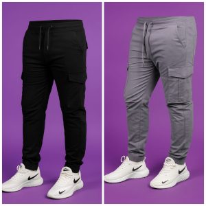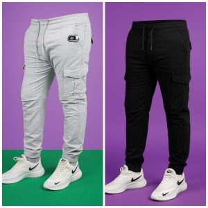 Premium Cargo Jogger’s Pant (2 pis Combo) – Black and Light Ash 6 pockets