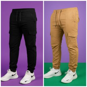Premium Cargo Jogger’s Pant (2 pis Combo) – Black and Khaki 6 pockets