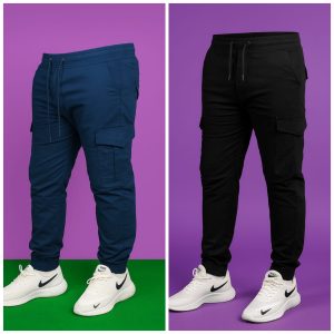 Premium Cargo Jogger’s Pant ( 2 pis Combo) – Black and Blue 6 pockets