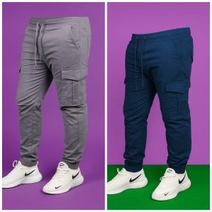 Premium Cargo Jogger’s Pant (2 pis Combo) –Ash and Blue 6 pockets