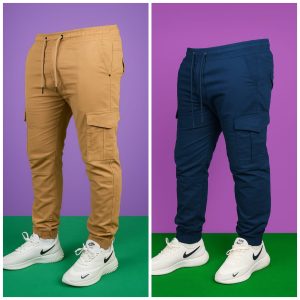 Premium Cargo Jogger’s Pant for men’s (2 pis combo) khaki And Blue 6 pockets